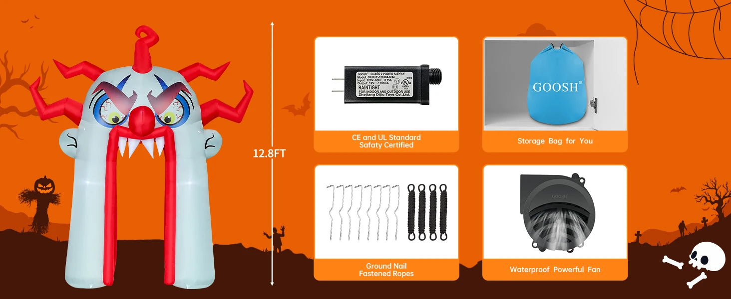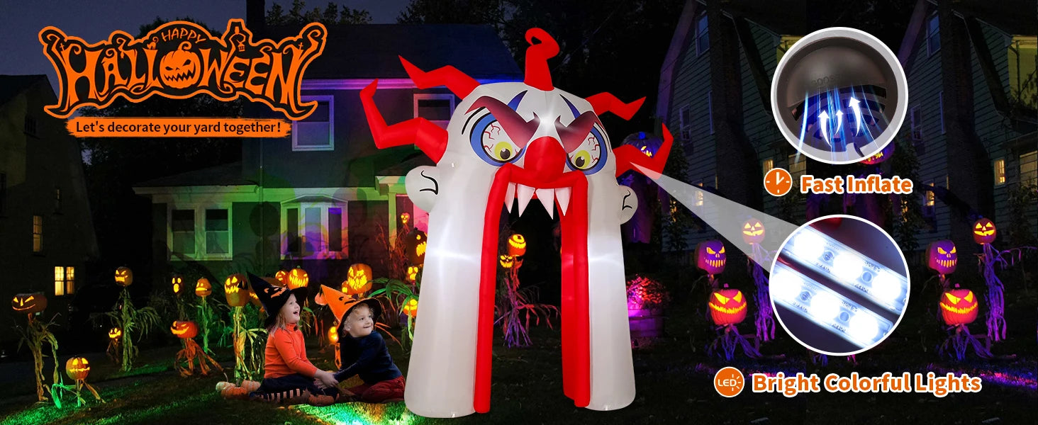 Create a spooky and fun entrance for your Halloween party with the Halloween Clown Arch by GOOSH. Perfect for parties and festive events, this unisex inflatable arch features a vibrant cartoon-style clown design that adds excitement and a playful scare to any celebration. Easy to set up and eye-catching, it transforms any doorway into a memorable Halloween highlight.