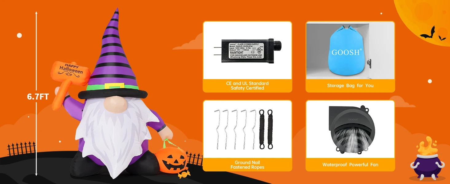 Bring festive cheer to your Halloween with the Halloween Gnome Inflatable by GOOSH. This unisex, cartoon-shaped inflatable is perfect for parties and seasonal decorations, adding a playful and whimsical touch to any setting.